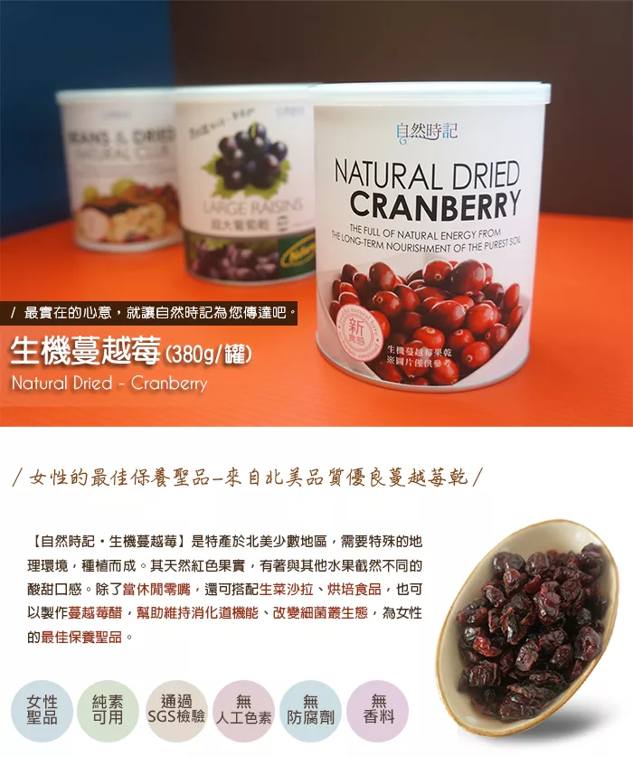 商品說明: 【自然時記】生機蔓越莓(罐)