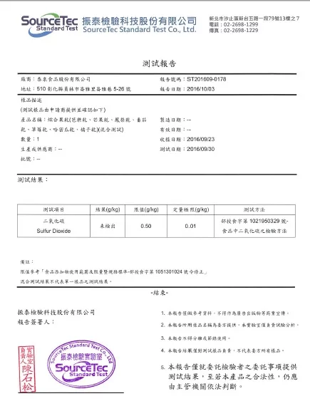 本系列果乾原料除了草莓基於成本原因必須進口外,其他皆為台灣從南到北各產區生產的當令水果原料。並經各項檢驗報告。