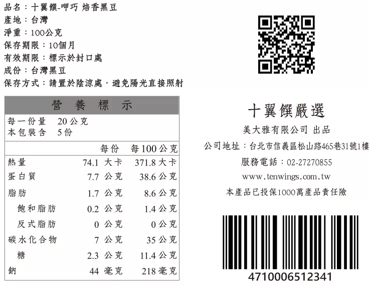 商品描述: 【十翼饌】呷巧焙香黑豆 (100g)