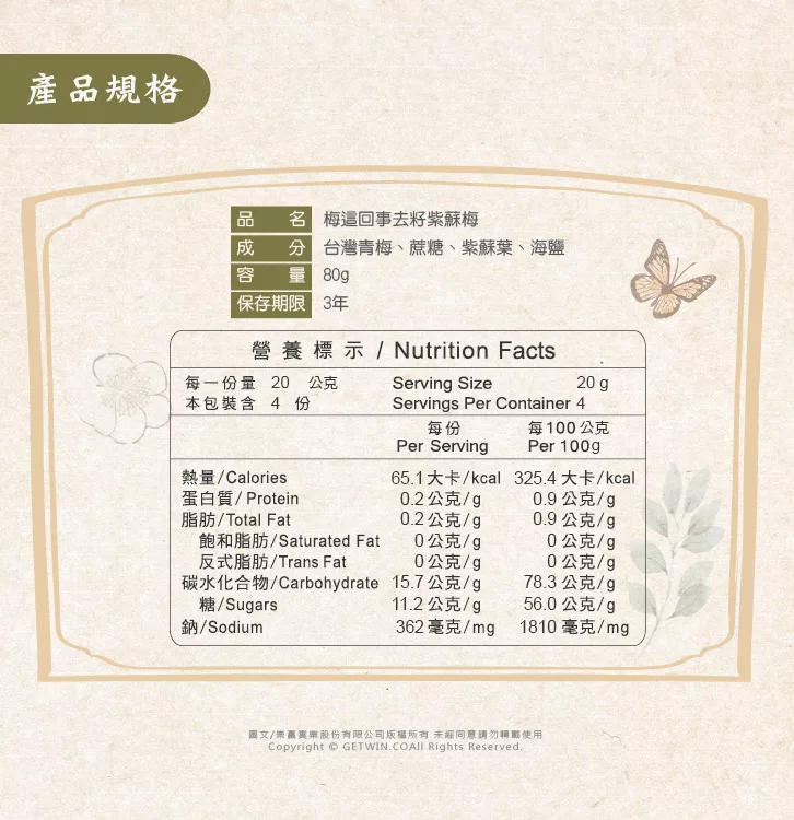 商品描述: 【梅這回事】去籽紫蘇梅
