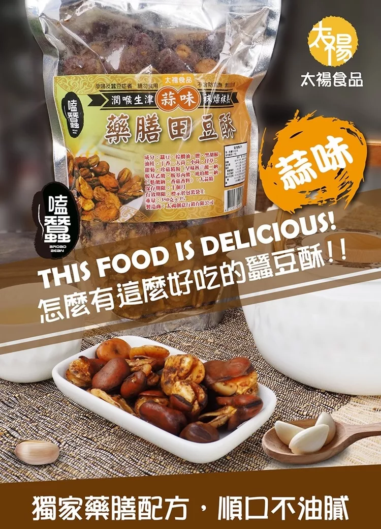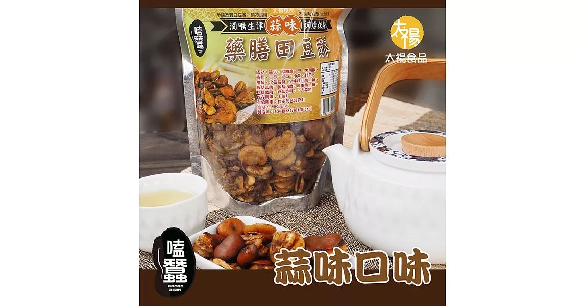 →→→→更多詳細”【太禓食品】嗑蠶藥膳田豆酥(蒜味)(350g/包)”介紹請點我