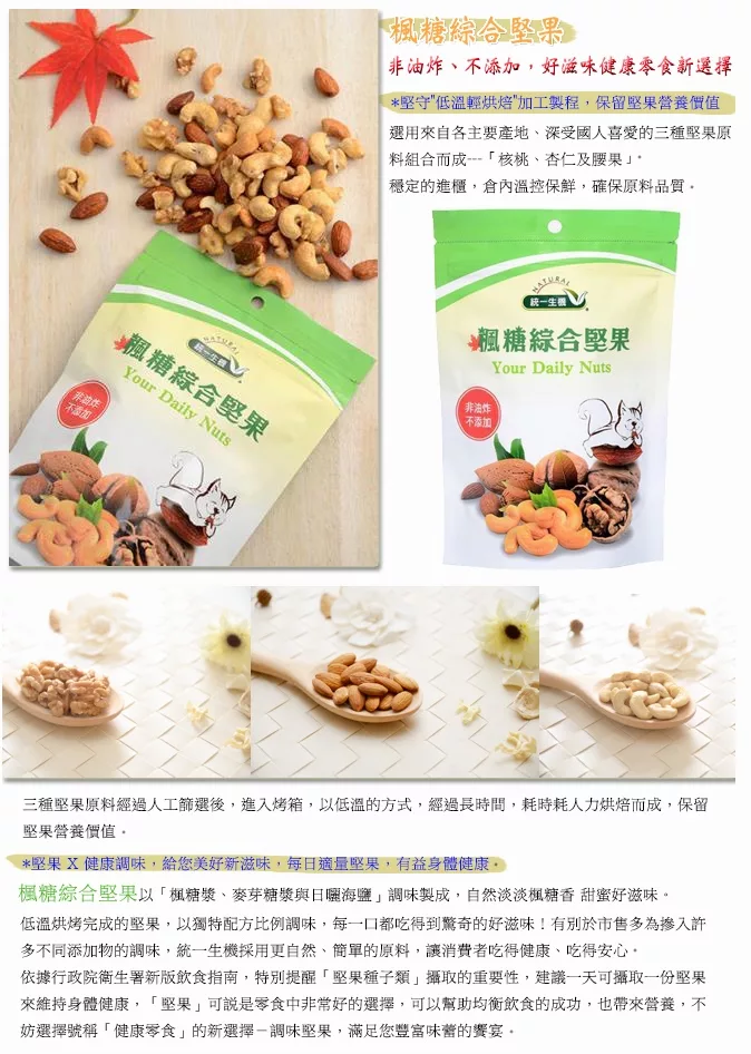 →→→→更多詳細”【統一生機】楓糖綜合堅果 150g/袋”介紹請點我