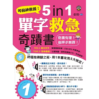 | 全面突破全新制多益TOEIC必考單字【虛擬點讀筆版】(附贈金色證書必考單字滿分攻略本+1CD) | 考前神救援!5 in 1單字救急奇蹟書 | ||
