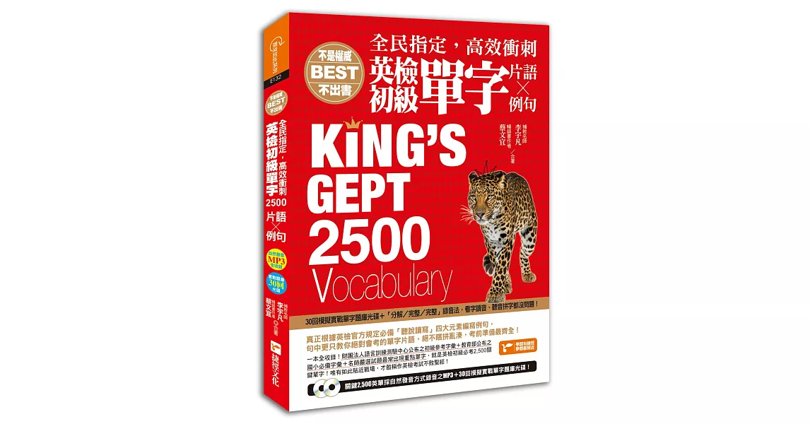 →→→→更多詳細”全民指定,高效衝刺 英檢初級單字2500(片語&例句):隨書附贈關鍵2500英單採自然發音方式錄音之MP3及30回模擬實戰單字題庫光碟”介紹請點我
