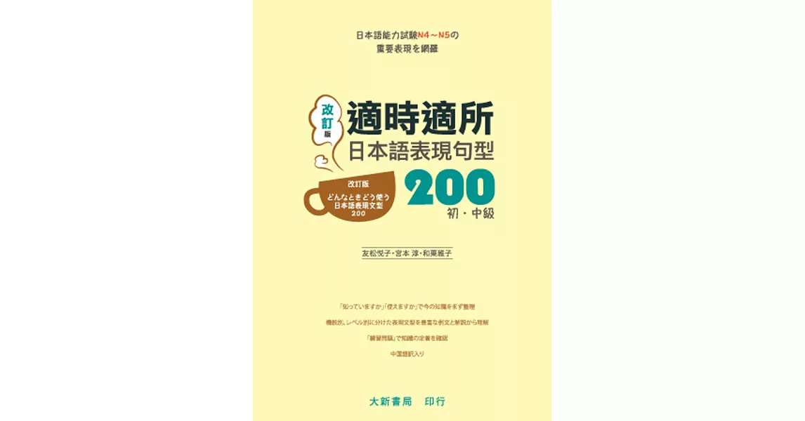 博客來-適時適所 日本語表現句型200 初中級(改訂版)訂購網址: https://www.books.com.tw/exep/assp.php/87926/products/0010691339?utm_source=87926&utm_medium=ap-books&utm_content=recommend&utm_campaign=ap-201906