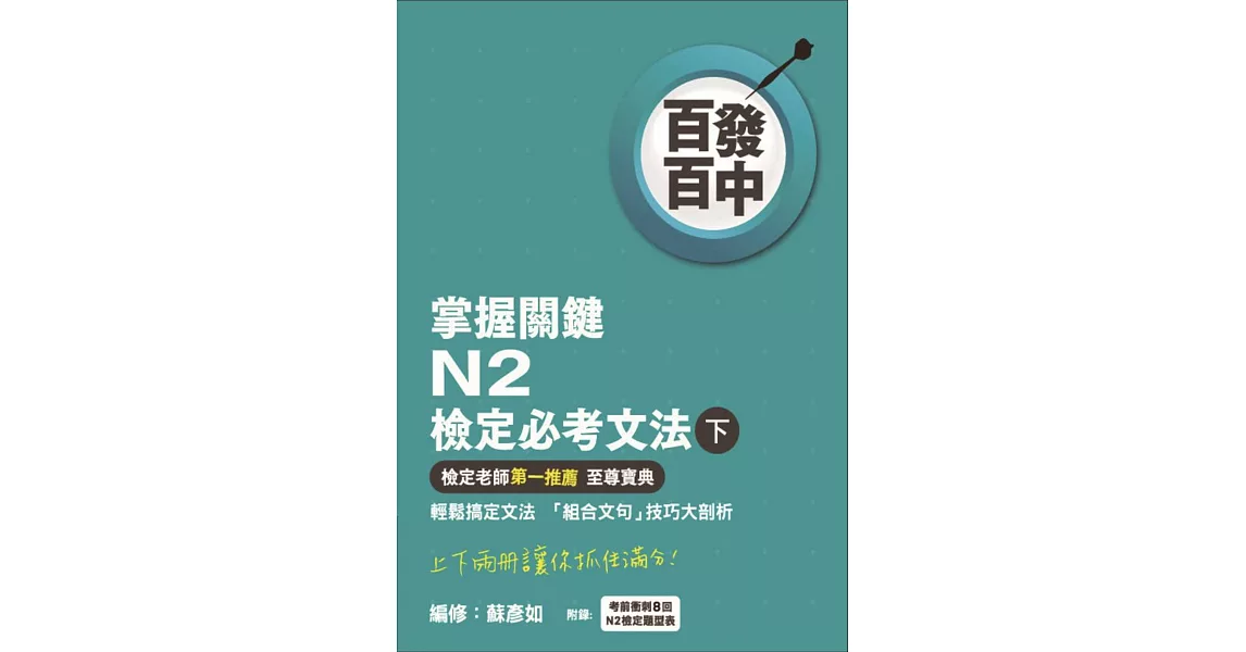 博客來-百發百中掌握關鍵 N2檢定必考文法(下)訂購網址: https://www.books.com.tw/exep/assp.php/87926/products/0010704448?utm_source=87926&utm_medium=ap-books&utm_content=recommend&utm_campaign=ap-201906