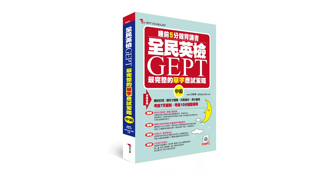 商品說明: 全民英檢 GEPT最完整的單字應試策略 (中級)睡前5分鐘背誦書(附MP3)