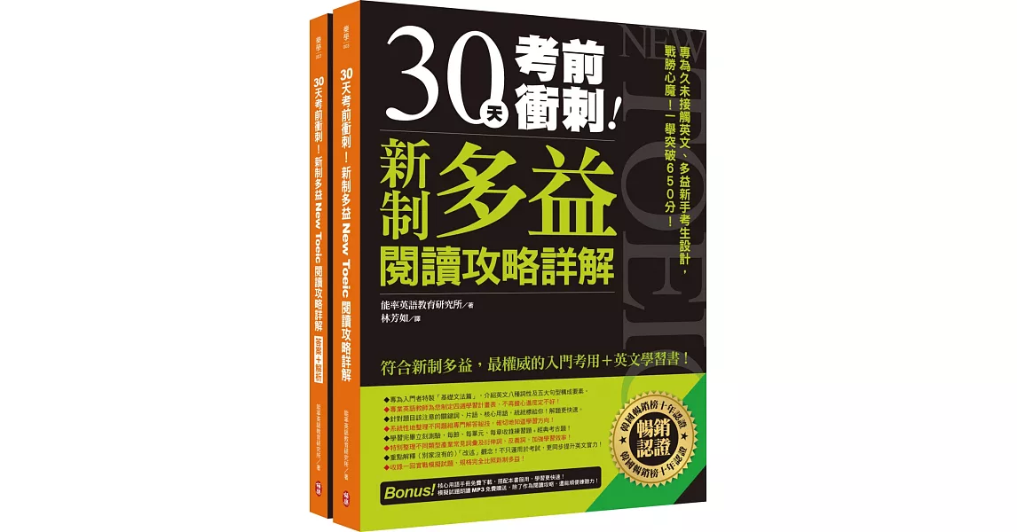 你在找博客來-30天考前衝刺!新制多益閱讀攻略+詳解:專為久未接觸英文、多益新手考生設計,戰勝心魔!一舉突破650分!(雙書裝+防水書套+免費單字本、MP3下載)哪裡買嗎?