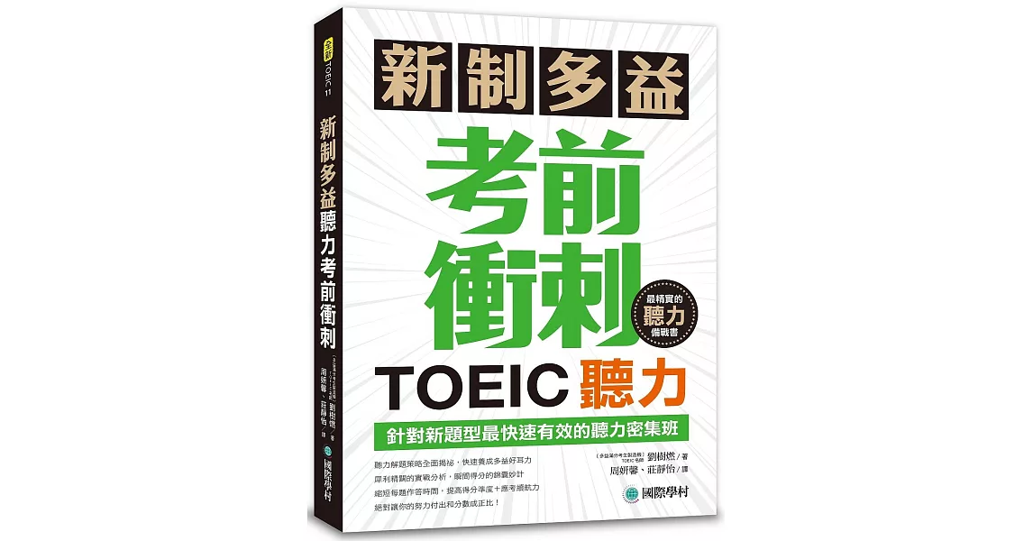 博客來-新制多益TOEIC聽力考前衝刺:針對新題型最快速有效的聽力密集班!(附MP3+QR碼線上音檔)訂購網址: https://www.books.com.tw/exep/assp.php/87926/products/0010801809?utm_source=87926&utm_medium=ap-books&utm_content=recommend&utm_campaign=ap-201906