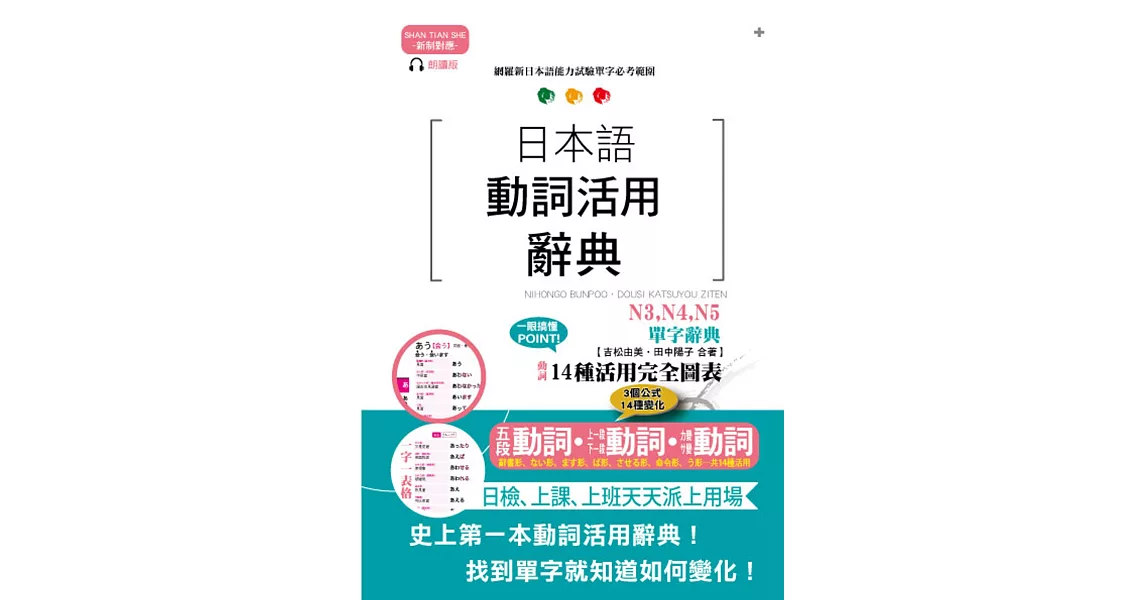 博客來-新制對應朗讀版 日本語動詞活用辭典 N3,N4,N5單字辭典(25K+MP3)訂購網址: https://www.books.com.tw/exep/assp.php/87926/products/0010807554?utm_source=87926&utm_medium=ap-books&utm_content=recommend&utm_campaign=ap-201906