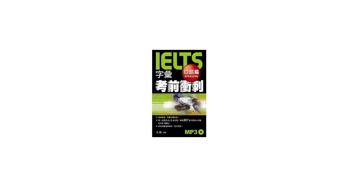 博客來-IELTS字彙考前衝刺 口語篇(附1 MP3)訂購網址: https://www.books.com.tw/exep/assp.php/87926/products/0010435100?utm_source=87926&utm_medium=ap-books&utm_content=recommend&utm_campaign=ap-201906