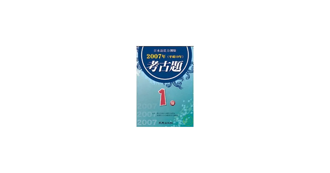 博客來-日本語能力測驗考古題1級(2007年)(書+1CD)訂購網址: https://www.books.com.tw/exep/assp.php/87926/products/0010421685?utm_source=87926&utm_medium=ap-books&utm_content=recommend&utm_campaign=ap-201906