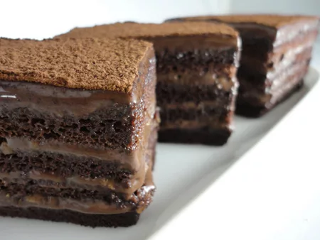 【成份】 苦甜巧克力、糖、蛋、鮮奶油、巴瑞脆餅、可可粉、巧克力海棉蛋糕、波美糖漿。