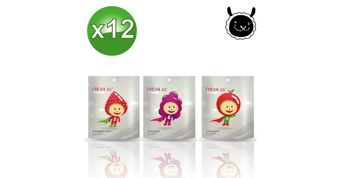 商品說明: 【壽滿趣】Fresh as天然凍乾水果片(草莓/葡萄/蘋果任選12包組)草莓12