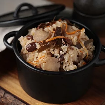 日式五目炊飯是日本經典的家常菜。GREEN &SAFE 師傅選用昆布、茶豆、胡蘿蔔、牛蒡及牛肝菌,不只用料豐富內含營養健康,簡單就能變出一鍋菜飯輕鬆上桌!?