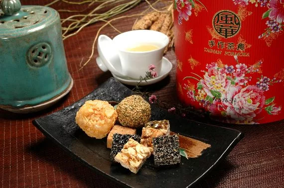 內容物:原味<花生,芝麻,南瓜子,杏仁,杏仁荖,翠玉荖,古早味花生酥,軟式芝麻(冬季限定)>茶食