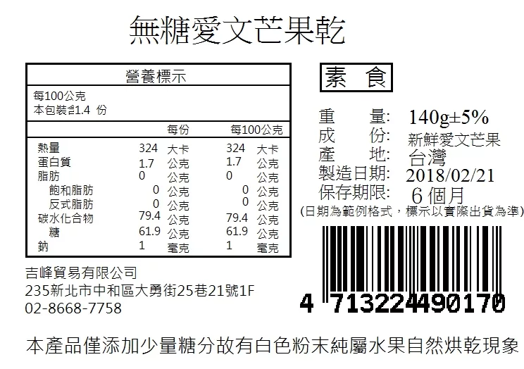 →→→→更多詳細”【午後小食光】無糖愛文芒果乾(140g±5%/包)”介紹請點我