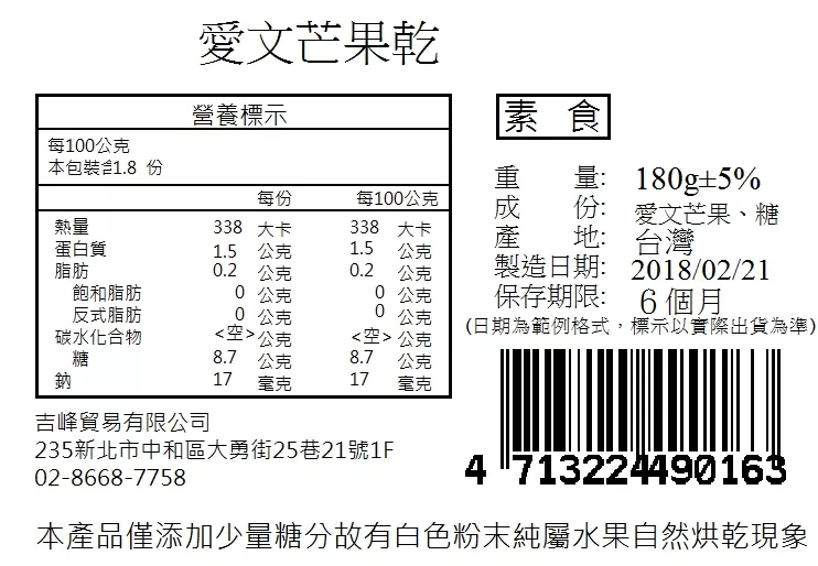 商品描述: 【午後小食光】愛文芒果乾(180g±5%/包)