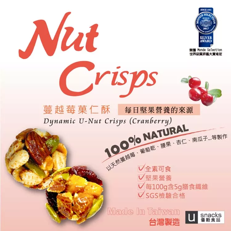 博客來-【優穀美身】蔓越莓果仁酥 (60g袋裝)訂購網址: https://www.books.com.tw/exep/assp.php/87926/products/N001185253?utm_source=87926&utm_medium=ap-books&utm_content=recommend&utm_campaign=ap-201911