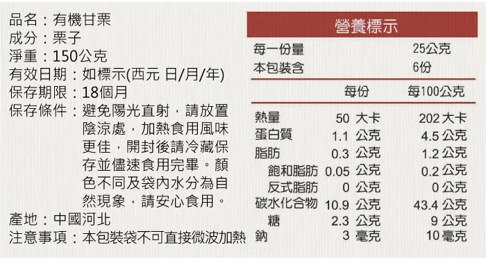 →→→→更多詳細”【康健生機】有機甘栗仁3入組(150g/包)”介紹請點我