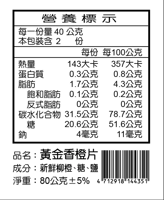 商品描述: 【盛發】香橙乾(80g/包)