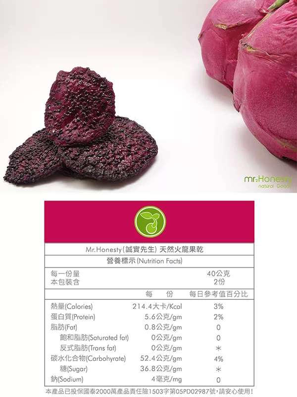 商品描述: 【mr.Honesty 誠實先生】天然手工烤焙火龍果乾(80克)