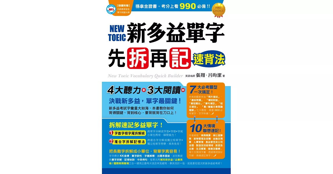 博客來-新多益單字先拆再記速背法訂購網址: https://www.books.com.tw/exep/assp.php/87926/products/0010645448?utm_source=87926&utm_medium=ap-books&utm_content=recommend&utm_campaign=ap-201906