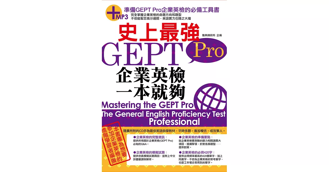 商品說明: 史上最強GEPT Pro企業英檢一本就夠(18K附MP3)
