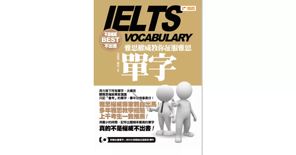 博客來-不是權威不出書:雅思權威教你征服雅思單字(隨書附贈:單字+例句外師親錄征服雅思MP3)訂購網址: https://www.books.com.tw/exep/assp.php/87926/products/0010665145?utm_source=87926&utm_medium=ap-books&utm_content=recommend&utm_campaign=ap-201906