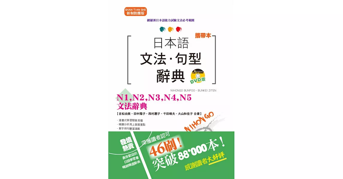 博客來-攜帶本 新制對應版 日本語文法句型辭典:N1,N2,N3,N4,N5文法辭典(50K+DVD)訂購網址: https://www.books.com.tw/exep/assp.php/87926/products/0010649662?utm_source=87926&utm_medium=ap-books&utm_content=recommend&utm_campaign=ap-201906