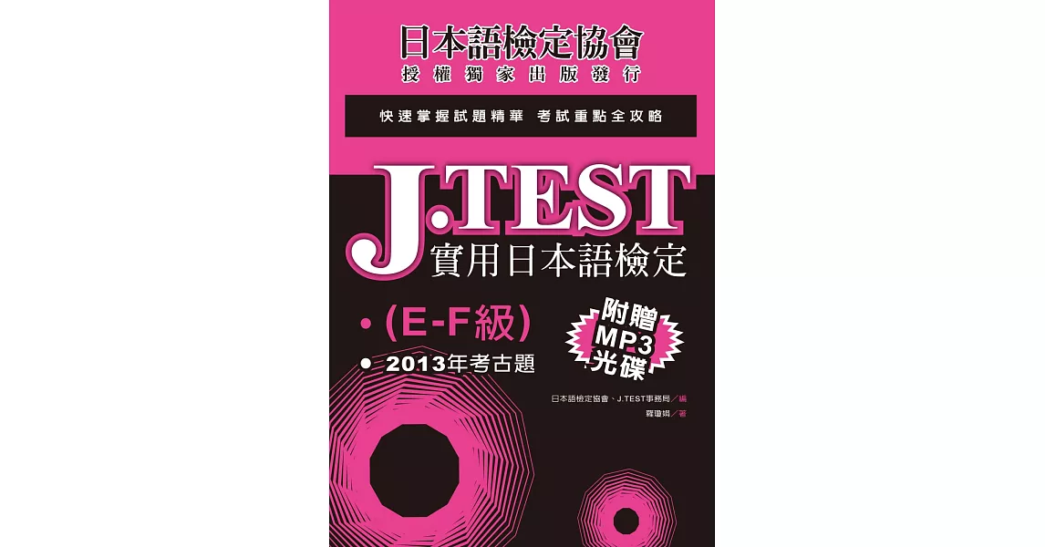 博客來-J.TEST實用日本語檢定:2013年考古題(E-F級)(附光碟)訂購網址: https://www.books.com.tw/exep/assp.php/87926/products/0010786378?utm_source=87926&utm_medium=ap-books&utm_content=recommend&utm_campaign=ap-201906