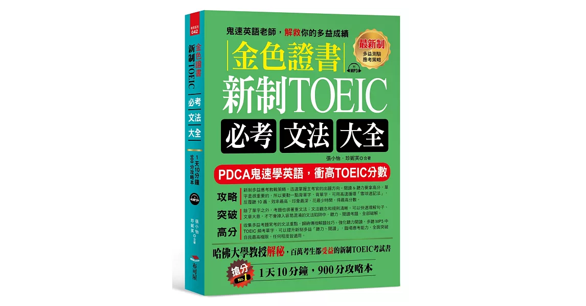 博客來-金色證書:新制TOEIC必考文法大全(附–衝高L&R分數頻考單字MP3)訂購網址: https://www.books.com.tw/exep/assp.php/87926/products/0010784047?utm_source=87926&utm_medium=ap-books&utm_content=recommend&utm_campaign=ap-201906