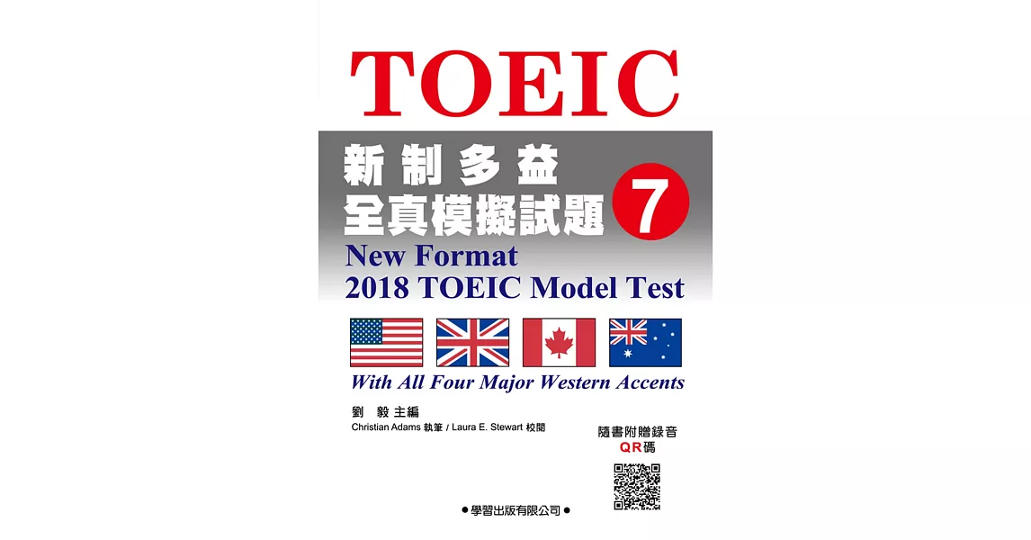 本書內容完全比照2018年3月即將上路的TOEIC新制題型出題,全書包含完整的聽力、閱讀模擬試題,以及口說、寫作測驗。搭配教師手冊之教師手稿解答讀本書和上課實況,必能幫助考生,一次就學好聽、說、讀、寫。書內附有聽力QR碼,「聽力部分」由美、加、英、澳四國播音員錄製,讀者只要反覆聆聽,必能熟悉四種不同的口音,從容應試。「口說部分」則由美籍播音員,以標準的美國音朗誦答題範例,供考生模仿學習。