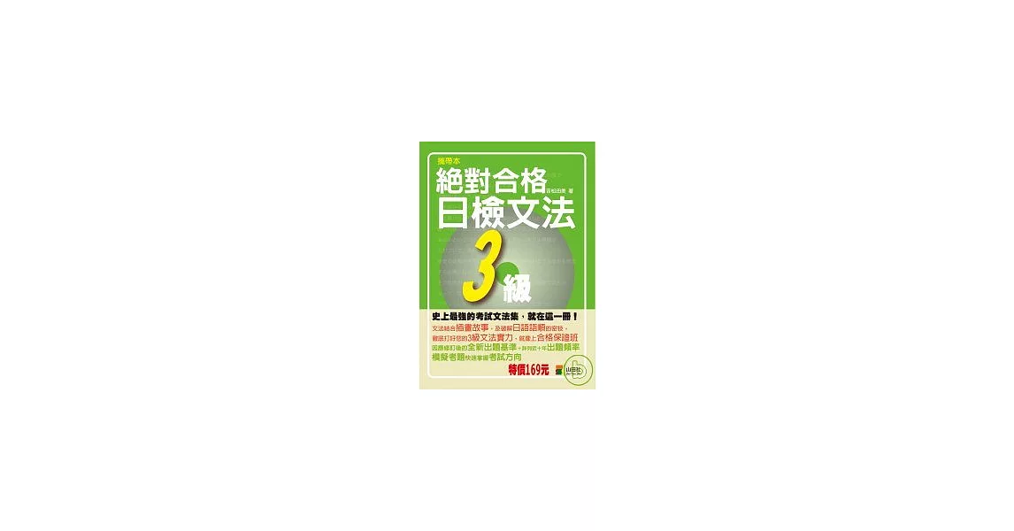 博客來-攜帶本 絕對合格 日檢文法3級(50K)訂購網址: https://www.books.com.tw/exep/assp.php/87926/products/0010409186?utm_source=87926&utm_medium=ap-books&utm_content=recommend&utm_campaign=ap-201906