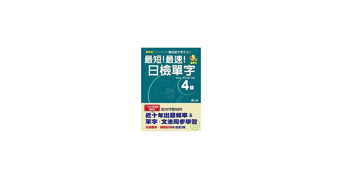 博客來-攜帶本最新版最短!最速!日檢單字4級(50K)訂購網址: https://www.books.com.tw/exep/assp.php/87926/products/0010415376?utm_source=87926&utm_medium=ap-books&utm_content=recommend&utm_campaign=ap-201906